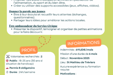 Bonjour, Dans le cadre du Service Civique, la Communauté de communes recrute deux volontaires âgés de 18 à 25 ans pour une mission intitulée « Promouvoir la santé et le bien-être de tous ». Cette Lire la suite