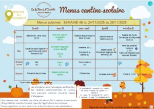 Veuillez trouver ci-après les menus des 5 semaines à venir.