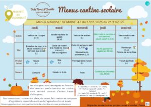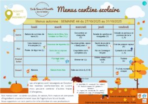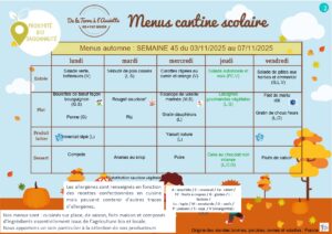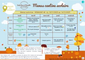 Veuillez trouver ci-après les menus des 5 semaines à venir.