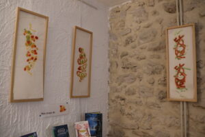 Textures, couleurs, gravures ornent les murs jusqu’au 3 avril. L’artiste n’utilise que des pigments naturels, et réalise donc collages de papiers de soie, gravures, peintures très colorés, plutôt abstraits. A voir, surtout par ces jours pluvieux…